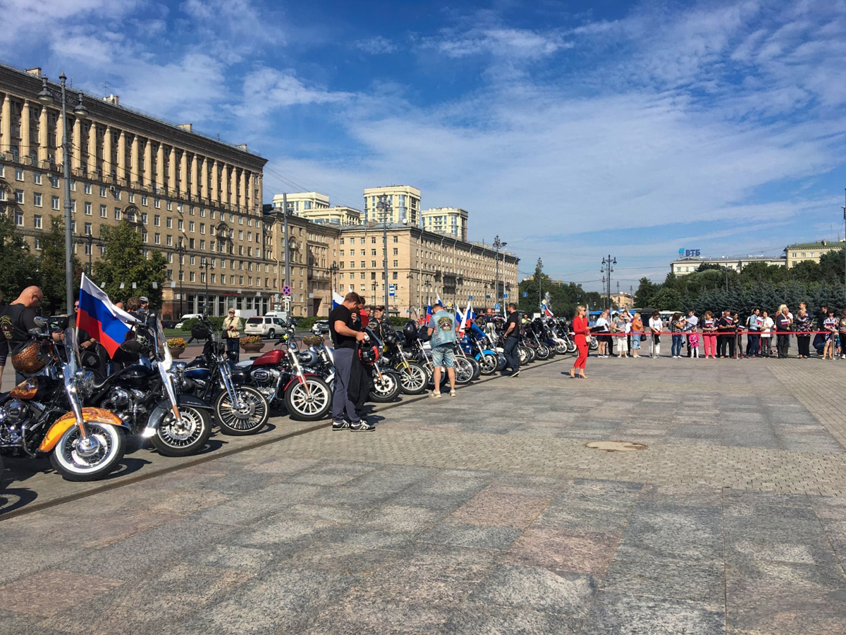 Торжественная часть праздника завершилась мотопробегом байкеров ассоциации «Мотоциклисты Санкт-Петербурга». Они проехали с Государственным флагом по главным магистралям Московского района.