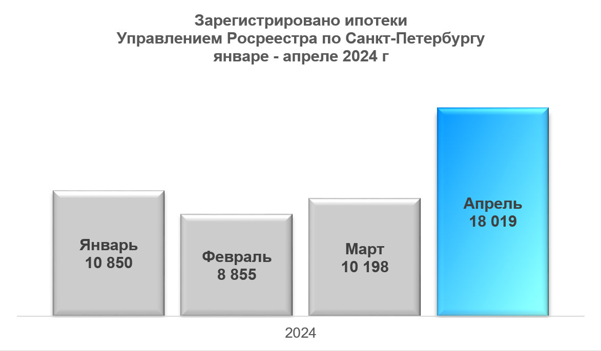 Ипотеки в апреле 2024 года зарегистрировано 18 019, что на 14% больше апреля 2023 года (15 739).