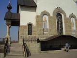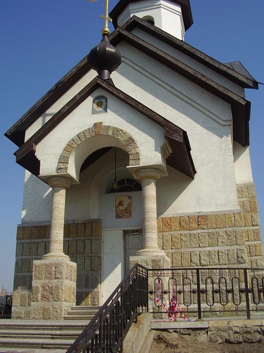 Небольшой купол венчает шатровый шпиль высотой 36 м. Наружные стены храма украшают мозаичные панно с изображением святых воинов. Внутреннее убранство храма - плод работы современных мастеров: художников, резчиков, вышивальщиц.