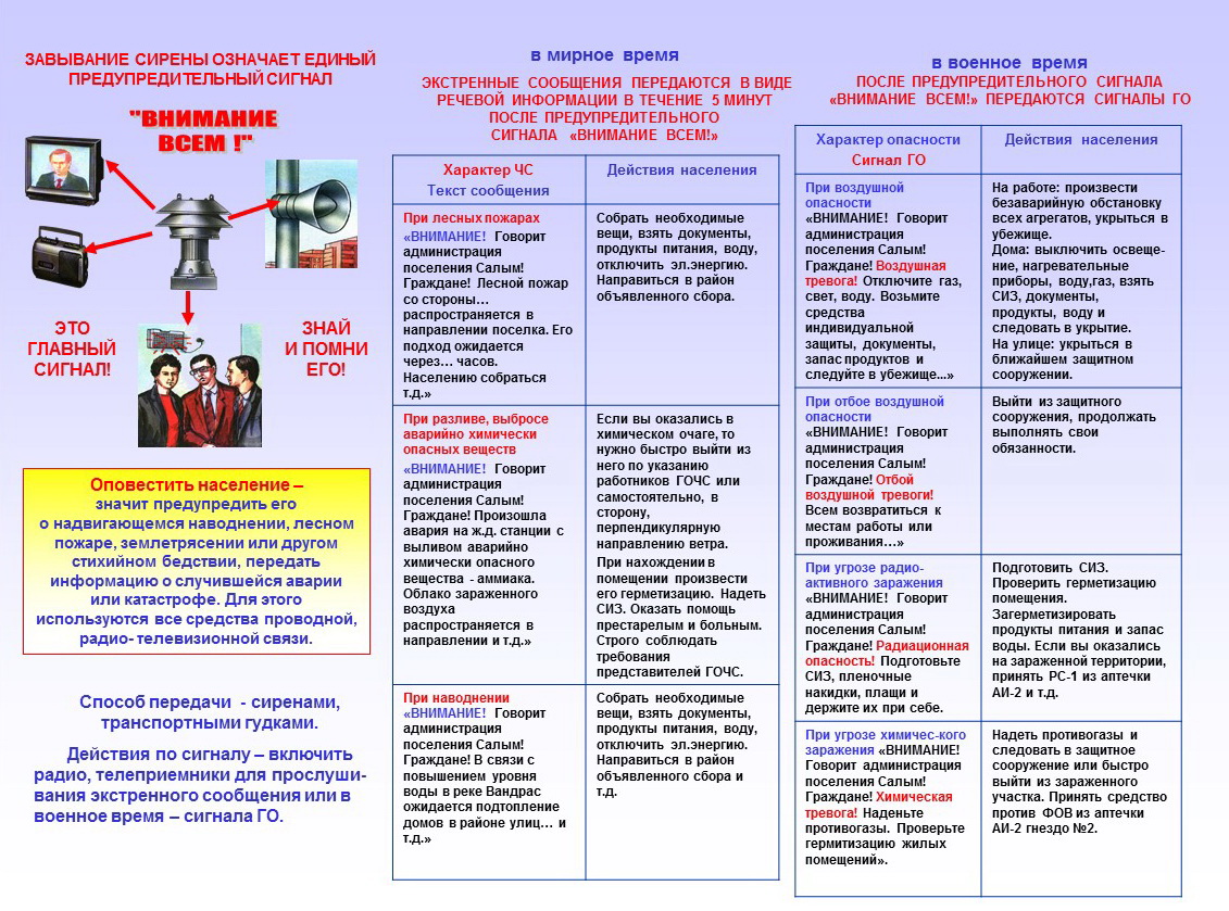 Информационные материалы по действиям населения по сигналам ГО и возникновении ЧС