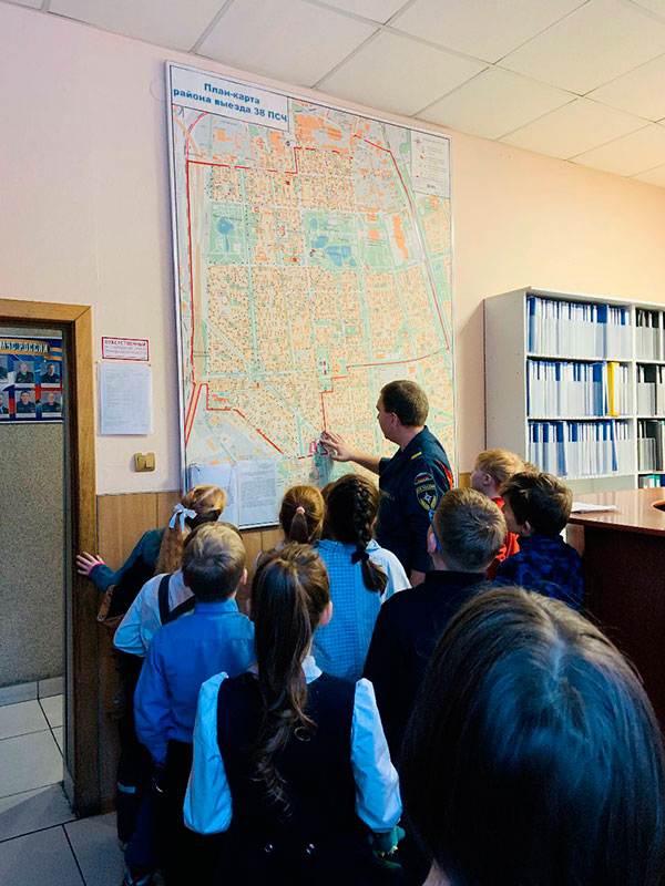 Во время экскурсии ребята познакомились с бытом пожарной части, узнали об особенностях доблестной профессии пожарного, узнали какие задачи они выполняют, какое спасательное оборудование существует и в каких случаях оно применяется. В первую очередь, ребят, конечно же, заинтересовали пожарные автомобили. Школьники изучили техническое оснащение пожарного автомобиля, все желающие смогли посидеть в машине. По завершению экскурсии им объяснили предназначение спичек в доме, разъясняли их опасность при попадании в неумелые руки, углубляли и систематизировали знания детей о причинных возникновения пожаров. Ребята почерпнули много полезной информации из беседы с теми, кто занимается тушением пожаров и спасением людей.
