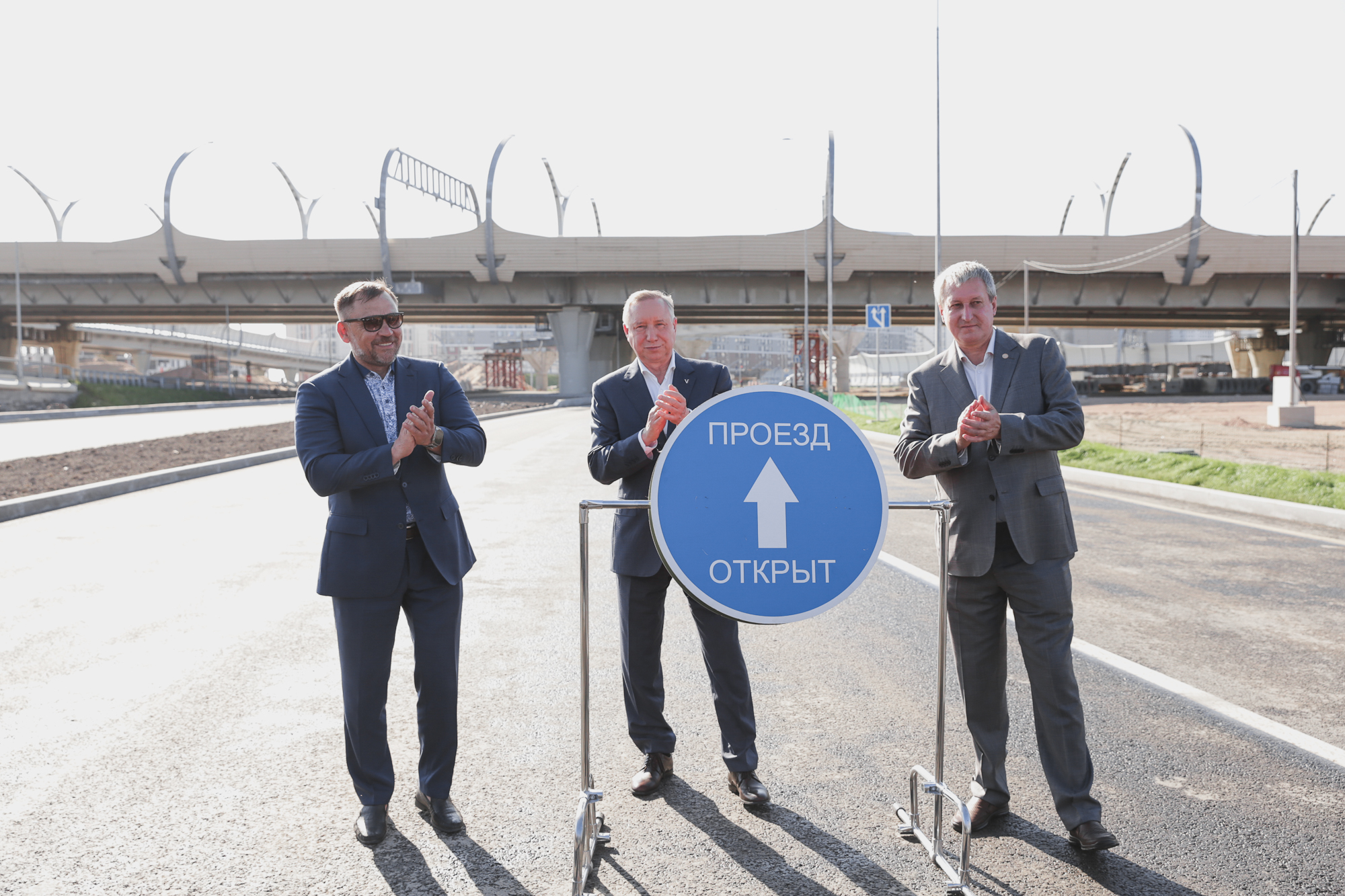 Александр Беглов открыл второй съезд Шкиперской развязки ЗСД, который на 10 километров и 20 минут сократит путь из южных районов на намывные территории