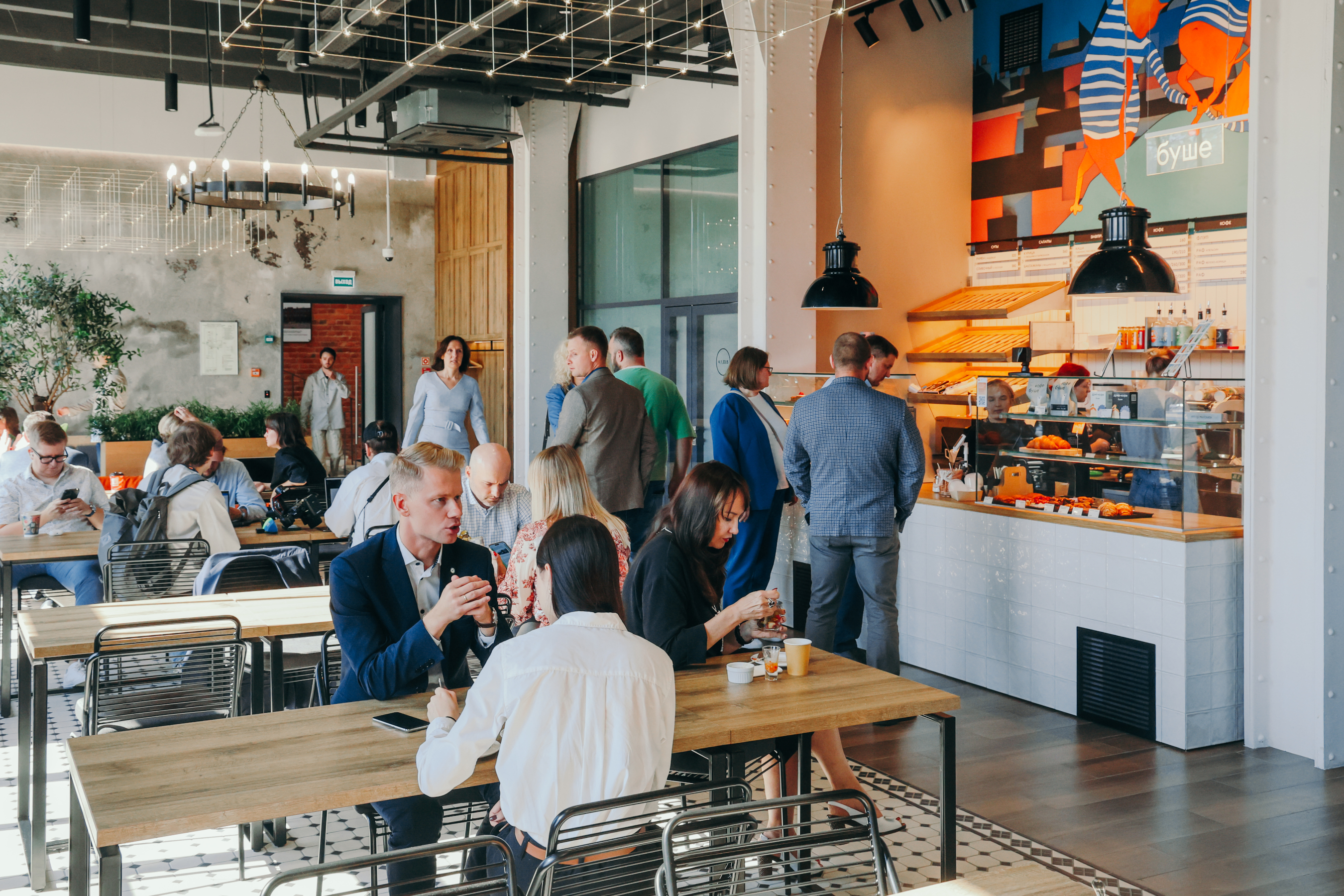 Александр Беглов и Герман Греф побеседовали с сотрудниками, которые уже обжились в новом технохабе.