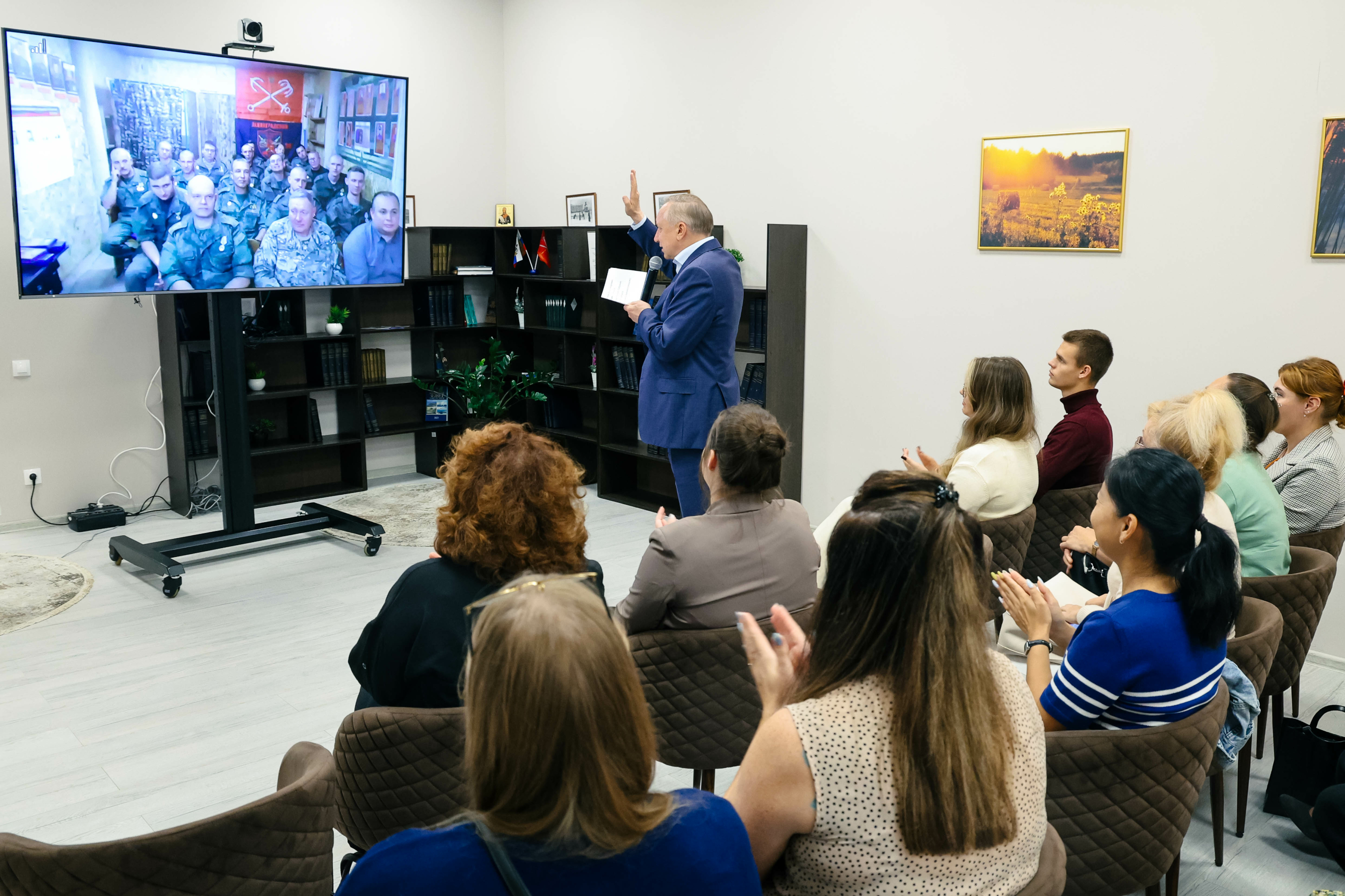 Губернатор Александр Беглов принял участие в телемосте, который связал Северную столицу с петербургскими воинами, принимающими участие в специальной военной операции в составе гвардейского мотострелкового Ленинградского полка под командованием полковника Михаила Когана. Глава города и семьи военных вышли на связь с бойцами, находящимися в одном из районов боевых действий.