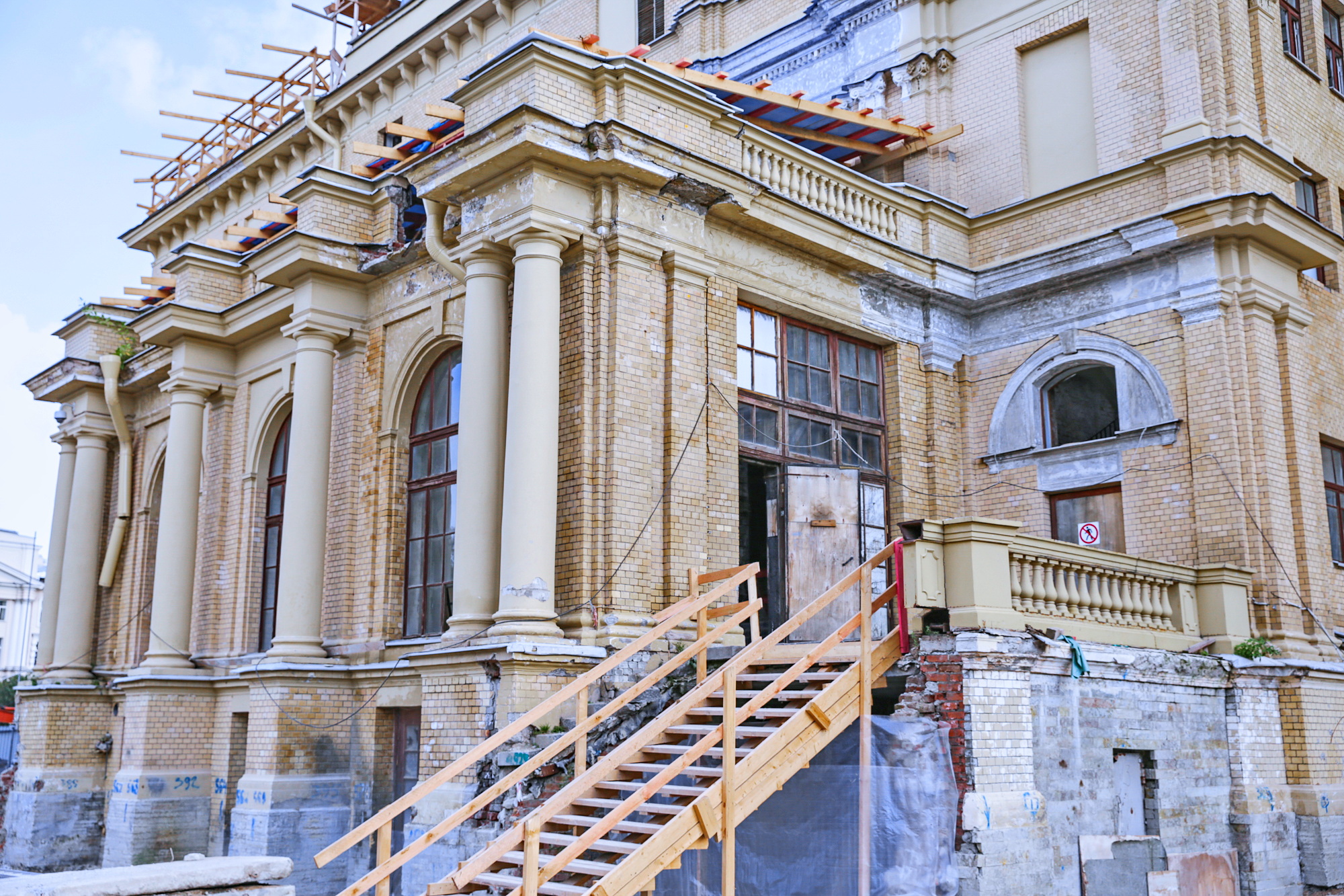 Строители создали под историческим зданием новый свайный фундамент. Всего установлено порядка полутора тысяч свай.