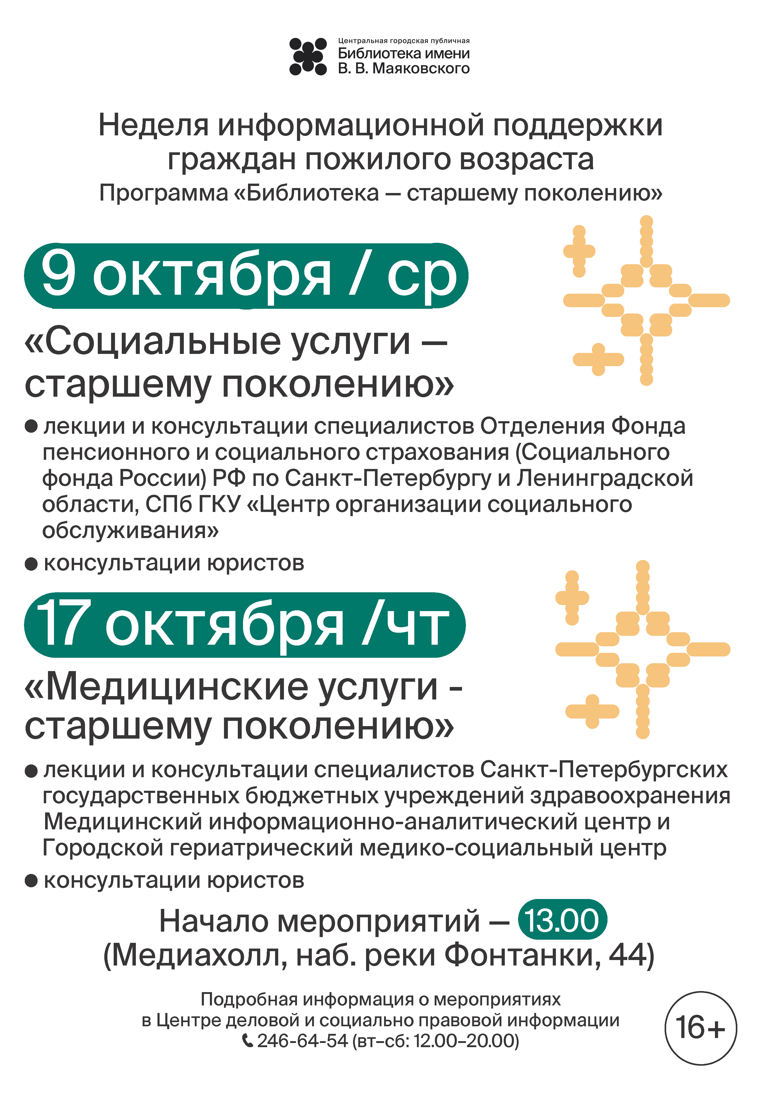 Приглашаем граждан Санкт-Петербурга на мероприятия, организованные в рамках Недели информационной поддержки граждан пожилого возраста и целевой программы