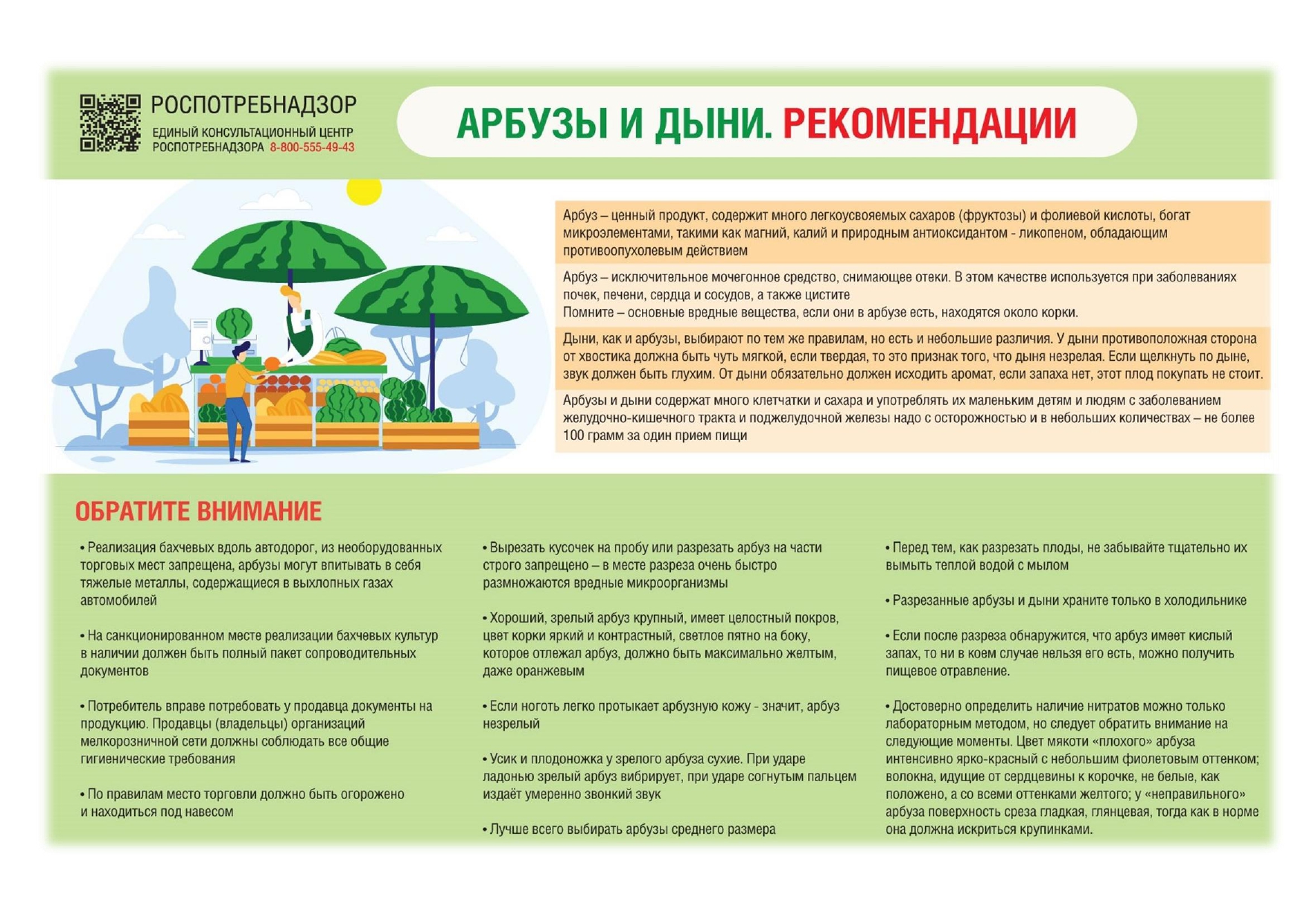 На санкционированном месте реализации бахчевых культур в наличии должны быть сопроводительные документы, подтверждающие качество и безопасность бахчевых культур (декларация о соответствии); у продавца должна быть на рабочем месте информация о юридическом лице, реализующем арбузы, вывеска с указанием времени работы, весы, продажа бахчевых культур осуществляется при наличии ценников с информацией о наименовании товара и его стоимости.