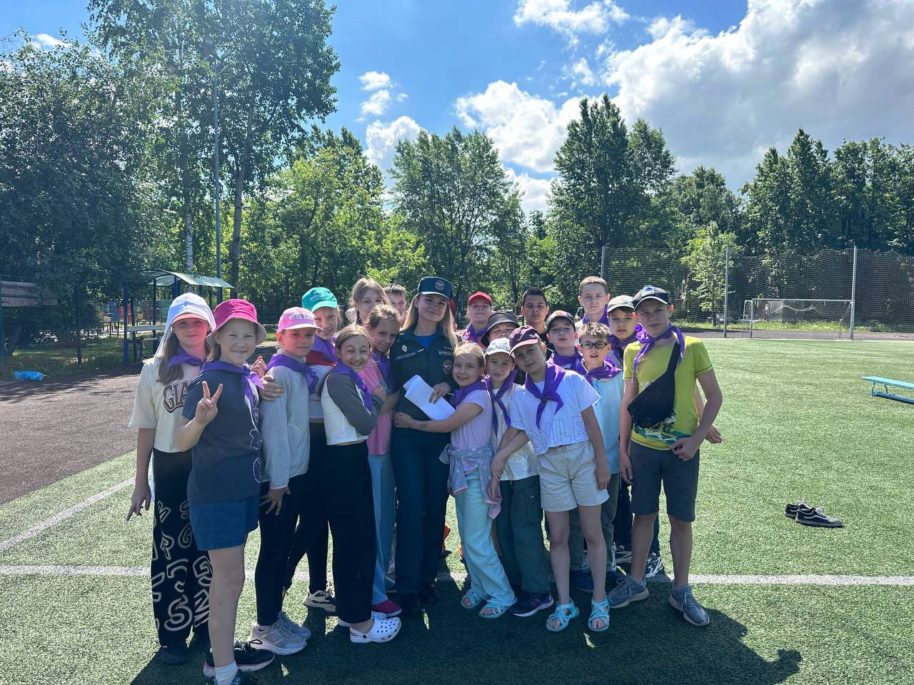 На базе ГБОУ школа № 372 Московского района Санкт-Петербурга во время летних каникул организован городской оздоровительный лагерь «Звездный». Воспитанников лагеря знакомят с правилами безопасности. Сотрудники отдела надзорной деятельности и профилактической работы Московского района управления по Московскому району Главного управления МЧС России по
