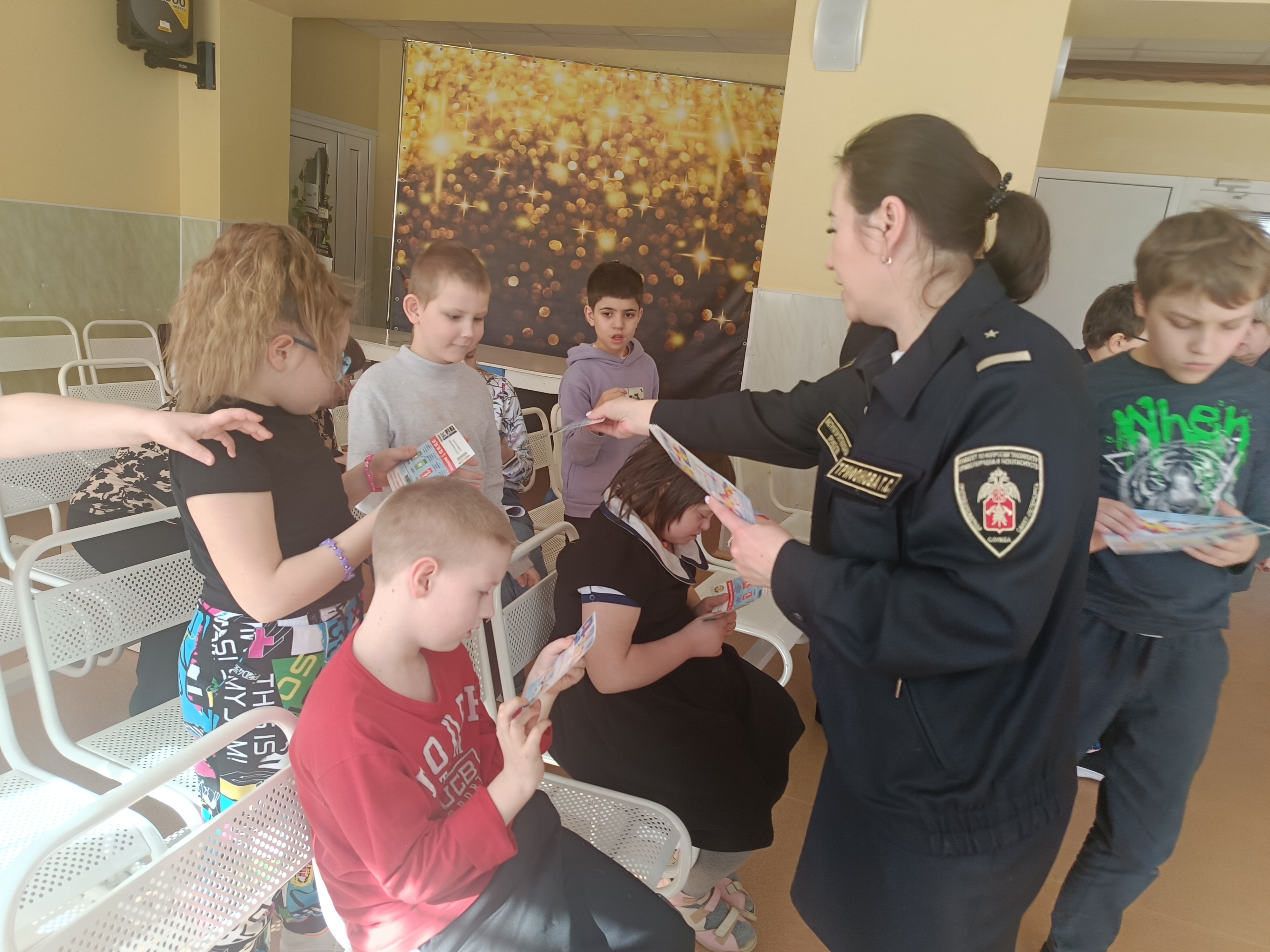 Специалисты пожарно-спасательного отряда Московского района совместно с представителями Московского отделения ВДПО посетили городской оздоровительный лагерь "Радуга здоровья", функционирующий на базе ГБОУ школа № 613 Московского района Санкт-Петербурга, с целью напомнить детям правила пожарной безопасности, рассказать, как действовать в случае пожара, как вести себя в период весеннего паводка. Ребята в очередной раз повторили правила пожарной безопасности, а также правила поведения в случае возгорания или задымления. Особое внимание было уделено безопасности на водоемах в весенний период времени. Обычно период паводка и ледохода приходится на весенние каникулы. В это время необходимо максимально усилить наблюдение взрослых за детьми, объяснять им, что находиться у реки или другого водоема крайне опасно. А чтобы закрепить все полученные знания, школьникам вручили буклеты, в которых содержится информация по правилам пожарной безопасности и правилах безопасного поведения на водных объектах.